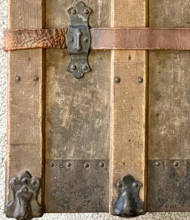 Beautiful natural patina throughout, with leather strap details and classic riveted corners.