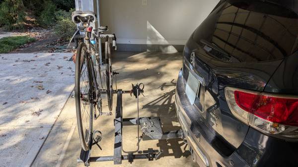 Hollywood hitch-mount bike rack. 2" receiver. Holds 2 bikes. Tilting rack. Super heavy duty.