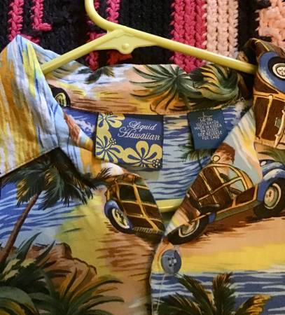 Always loved this shirt I bought new many many years ago but wore very little since gaining weight and it’s time to pass it on to someone who will appreciate it it might fit, which is a size large that’s really a beautiful shirt with some really vivid colors depicting volkswagen beetles made into woody's my photos probably don’t show, which appears to be an excellent condition other than possibly needing a little ironing from being in the closet all these years, pricing pretty reasonably as I see others of this vintage selling for much much more. So if you’re interested in looking at it, please feel free to craigslist email us as we don’t text and we can meet you at the Internet exchange area at the address indicated.