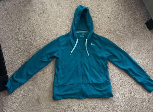 Please read entire listing very carefully prior to asking questions. Very nice and NEW $89 NIKE Dri-Fit Cropped Full Zip Hoodie in beautiful turquoise color - super SOFT and really GORGEOUS in...