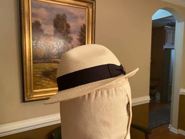 Walk with class with this unbelievably popular classic soft Panama hat of the last 40 years, the Casablanca. Infused with French Rivera styling, this is the quintessential European summer hat. Elegant, flowing, and easy wearing - it sings of linen suits, risqué bikinis and the freedom of warm days. Jaunty, relaxed and easy to wear. It surprised us how popular the Casablanca was. The design was refined it over the years - lowering its crown, making the brim more resilient and getting the ivory tone just perfect. You’re not going to fine anything like this in the USA. This hat was order overseas and shipped in. The internal head measurement size is 62 cm. If that is your size, you would be real lucky to get this.