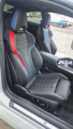 new 2024 BMW M2 in BMW's Alpine White on Black leather interior. The car comes well optioned with the Shadowline Package and the Lighting Package. Other options included on this M2 are a Factory Carbon Roof, heated steering wheel, wireless charging, Live Cockpit Pro (heads up display) and more.