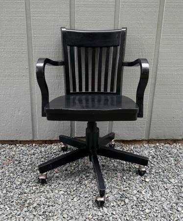 Vintage Solid Wood Black Swivel Rolling Lawyer Library Bankers Chair...