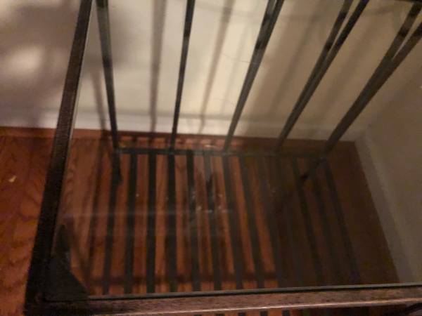 Beautiful heavy well made metal and glass wine bar. A very cool design. Can use as a decorative side table. The uses can be endless. Plants, food, or as storage in any room and with any decor.