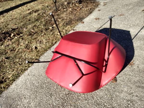 The chair has a reinforced fiberglass frame, which facilitate the artistic curves, with the Eero Saarinen "tubular steel leg frame" These are done in a black powder coat.