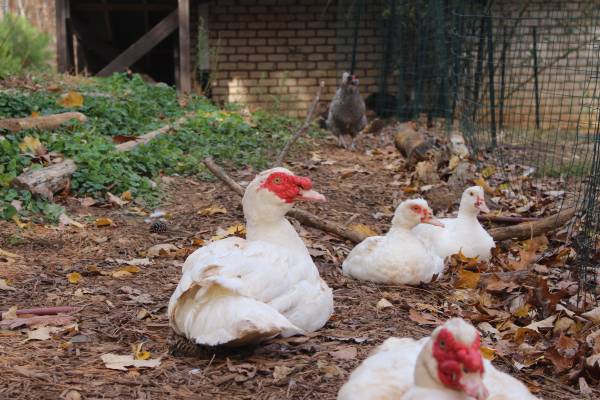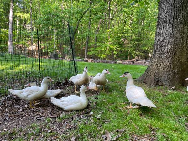 I have 4 female muscovy ducks, they are between 3-4 month, all feathered. $30 each. They have black spot on top of their head, but will be fully white when reaching adulthood.