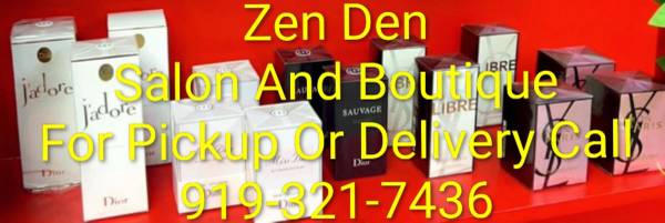 Zen Den Salon And Boutique Of Durham is now offering premium quality fragrances for up to 70% off. The season of giving is upon us and these fragrances will make the perfect gift for others or a great personal gift for yourself. Do not miss out on this opportunity because these products will not last, and are sold on a first come first serve basis. For more information or to schedule a purchase please call, text or email. SURCHARGE FEE FOR DELIVERIES OUTSIDE OF DURHAM.