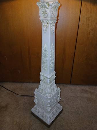 Mid Century Hollywood Regency / Baroque obelisk lamp. Cast resin. 35 inches. $35