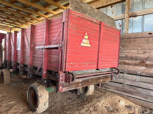 International Silage Wagon on John Deere Running Gear - PTO driven chain unload works good so we unloaded from the back. If you wanted to unload from the front unload would need a new belt.