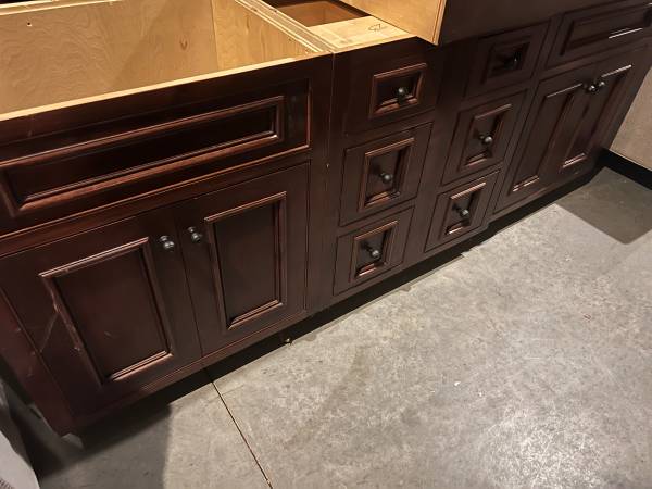 These are solid wood cordovan - Sable beautiful cabinets , three bottoms and one top