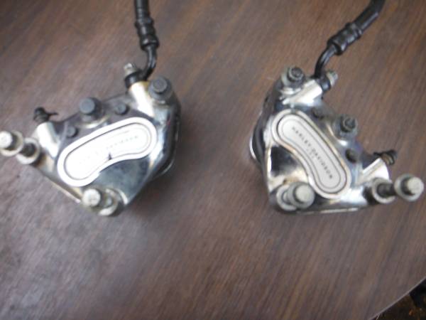 these 2 Chrome Harley calipers and hose , $175 i will ship in a postal mailing box , you pay the shipping ! i DON"T text , so please just call me !