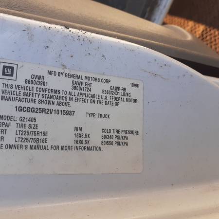 10/96 Chevy 2500 Van Parting Out. Still Have Side Doors.