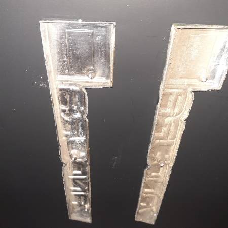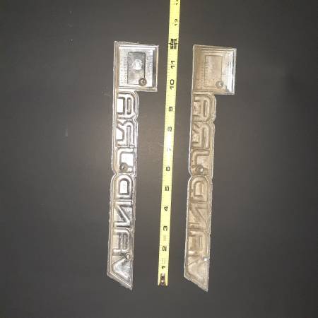 Pair of Vandura 2500 Van Chrome Metal Fender Emblems. 80s/90s. Part #14052244 Paint Has Faded. Original Factory Emblems. Preowned/Used. $40.00 for the Pair. Willow Spring NC McGee's Crossroads