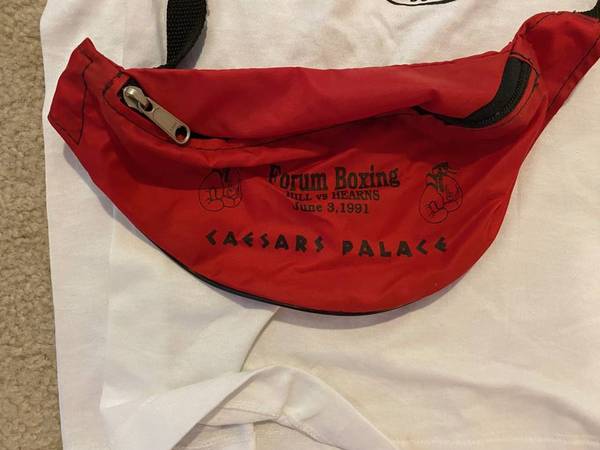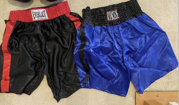 LOT: 2 set of pro boxing shorts size XL 1 Pair size 12 boxing shoes 1 size L boxing shirt 1 waistbelt from the 1991 fight at Ceasers Palace in Las Vegas 1 wall Clock from the Soper Fight Hagler/...